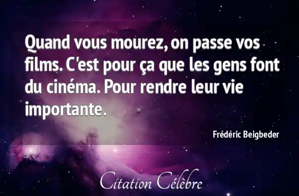 Quand vous mourez, on passe vos films. C'est pour ça que les gens font du cinéma. Pour rendre leur vie importante.