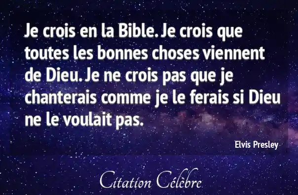 Je crois en la Bible. Je crois que toutes les bonnes choses viennent de Dieu. Je ne crois pas que je chanterais comme je le ferais si Dieu ne le voulait pas.