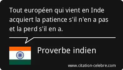 Tout européen qui vient en Inde acquiert la patience s'il n'en a pas et la perd s'il en a.