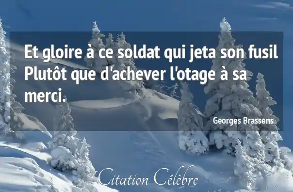 Et gloire à ce soldat qui jeta son fusil Plutôt que d'achever l'otage à sa merci.