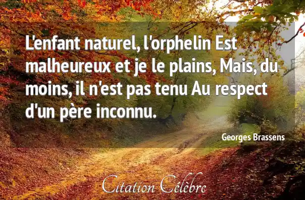L'enfant naturel, l'orphelin Est malheureux et je le plains, Mais, du moins, il n'est pas tenu Au respect d'un père inconnu.