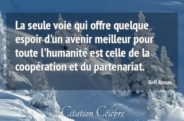 La seule voie qui offre quelque espoir d'un avenir meilleur pour toute l'humanité est celle de la coopération et du partenariat.