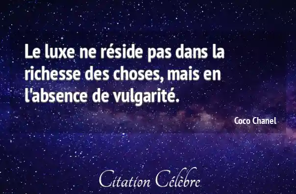 Le luxe ne réside pas dans la richesse des choses, mais en l'absence de vulgarité.
