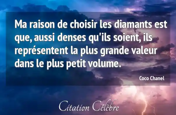 Ma raison de choisir les diamants est que, aussi denses qu'ils soient, ils représentent la plus grande valeur dans le plus petit volume.