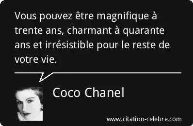 Vous pouvez être magnifique à trente ans, charmant à quarante ans et irrésistible pour le reste de votre vie.