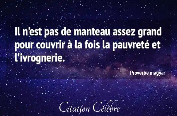 Il n'est pas de manteau assez grand pour couvrir à la fois la pauvreté et l'ivrognerie.