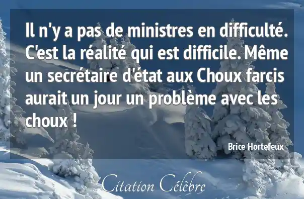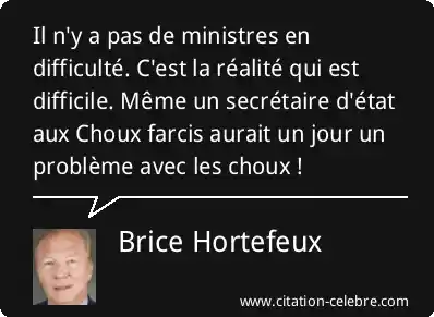 Il n'y a pas de ministres en difficulté. C'est la réalité qui est difficile. Même un secrétaire d'état aux Choux farcis aurait un jour un problème avec les choux !