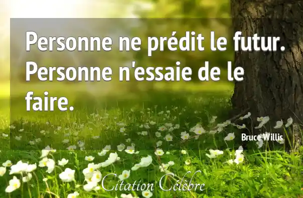 Citation Bruce Willis personne : Personne ne prédit le futur. Personne n'essaie de le faire....