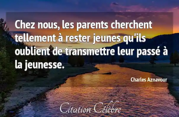 Chez nous, les parents cherchent tellement à rester jeunes qu'ils oublient de transmettre leur passé à la jeunesse.