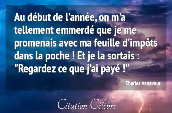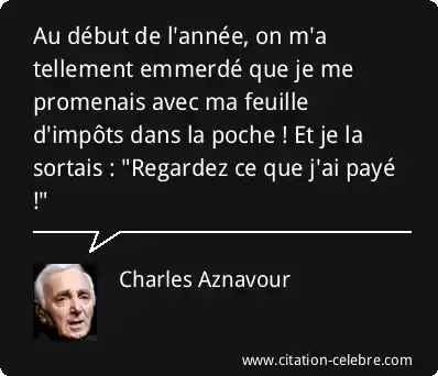 Au début de l'année, on m'a tellement emmerdé que je me promenais avec ma feuille d'impôts dans la poche ! Et je la sortais : "Regardez ce que j'ai payé !"
