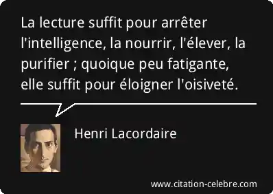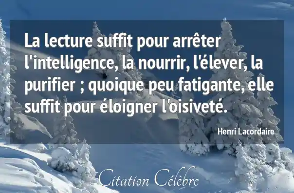 La lecture suffit pour arrêter l'intelligence, la nourrir, l'élever, la purifier ; quoique peu fatigante, elle suffit pour éloigner l'oisiveté.