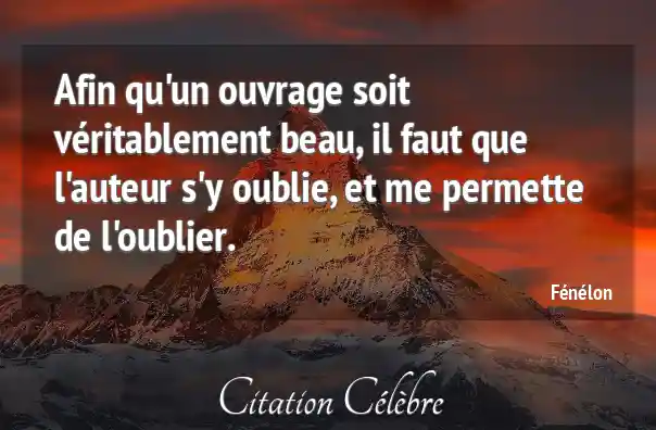 Afin qu'un ouvrage soit véritablement beau, il faut que l'auteur s'y oublie, et me permette de l'oublier.