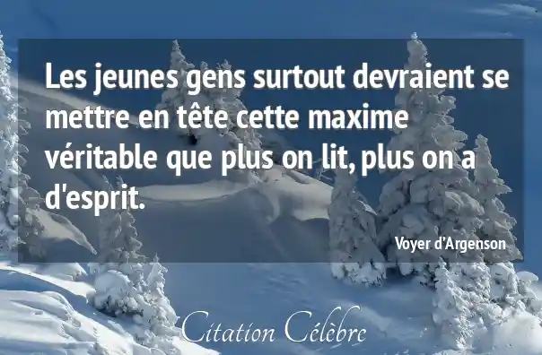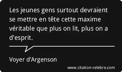 Les jeunes gens surtout devraient se mettre en tête cette maxime véritable que plus on lit, plus on a d'esprit.