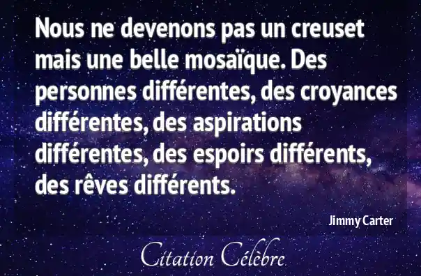 Nous ne devenons pas un creuset mais une belle mosaïque. Des personnes différentes, des croyances différentes, des aspirations différentes, des espoirs différents, des rêves différents.