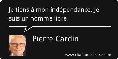 Citation Pierre Cardin homme : Je tiens à mon indépendance. Je suis un homme libre....