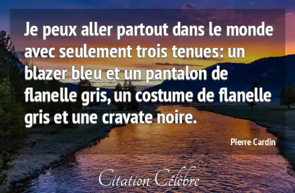Je peux aller partout dans le monde avec seulement trois tenues: un blazer bleu et un pantalon de flanelle gris, un costume de flanelle gris et une cravate noire.