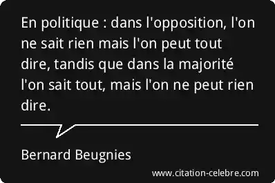 En politique : dans l'opposition, l'on ne sait rien mais l'on peut tout dire, tandis que dans la majorité l'on sait tout, mais l'on ne peut rien dire.