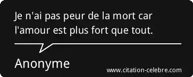Je n'ai pas peur de la mort car l'amour est plus fort que tout.