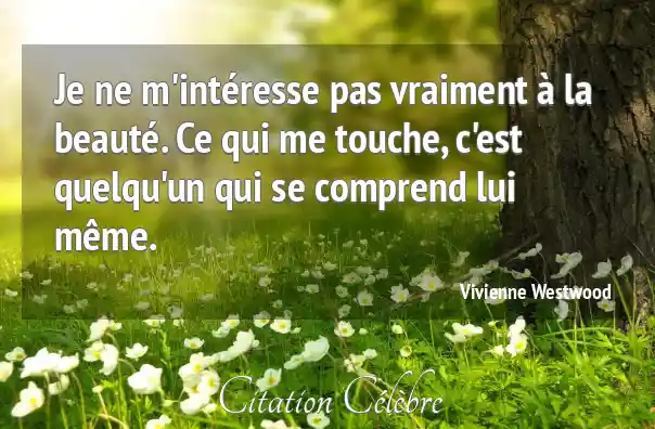 Je ne m'intéresse pas vraiment à la beauté. Ce qui me touche, c'est quelqu'un qui se comprend lui même.