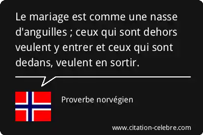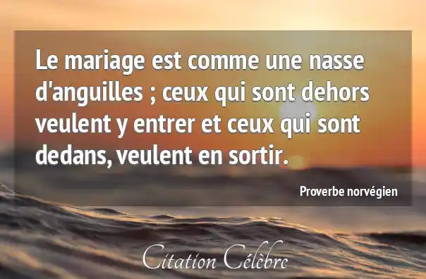 Le mariage est comme une nasse d'anguilles ; ceux qui sont dehors veulent y entrer et ceux qui sont dedans, veulent en sortir.