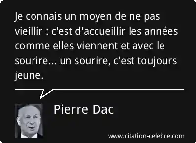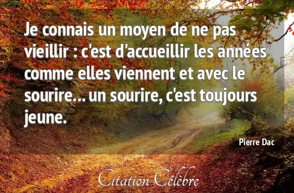 Je connais un moyen de ne pas vieillir : c'est d'accueillir les années comme elles viennent et avec le sourire... un sourire, c'est toujours jeune.
