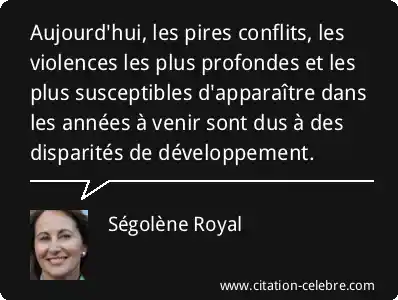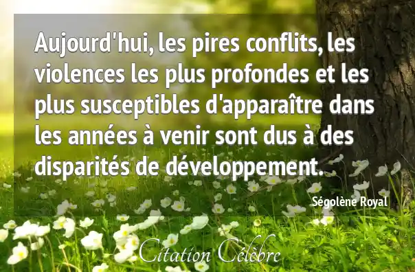Aujourd'hui, les pires conflits, les violences les plus profondes et les plus susceptibles d'apparaître dans les années à venir sont dus à des disparités de développement.