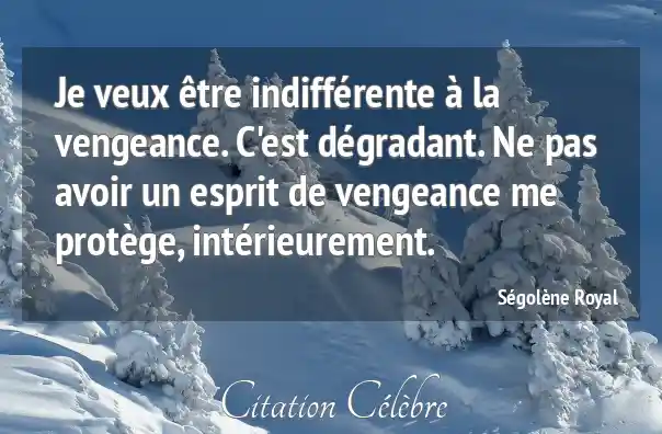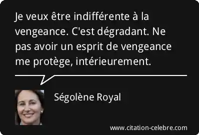 Je veux être indifférente à la vengeance. C'est dégradant. Ne pas avoir un esprit de vengeance me protège, intérieurement.