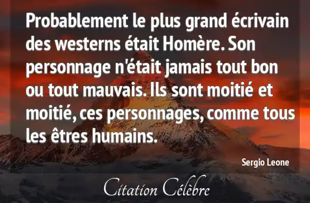 Probablement le plus grand écrivain des westerns était Homère. Son personnage n'était jamais tout bon ou tout mauvais. Ils sont moitié et moitié, ces personnages, comme tous les êtres humains.