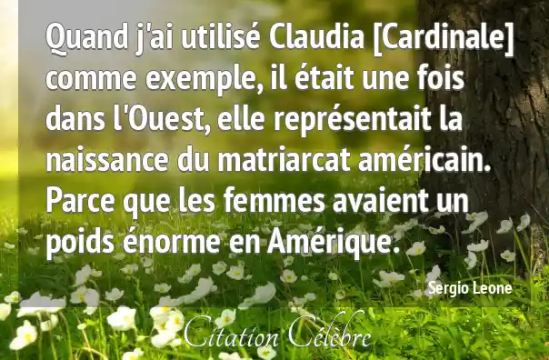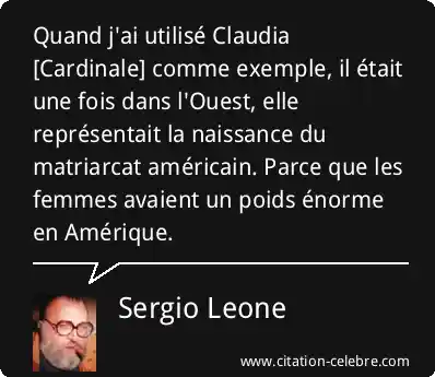 Quand j'ai utilisé Claudia [Cardinale] comme exemple, il était une fois dans l'Ouest, elle représentait la naissance du matriarcat américain. Parce que les femmes avaient un poids énorme en Amérique.