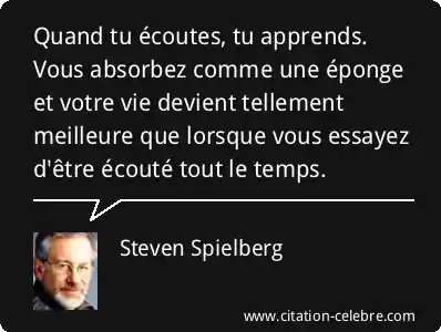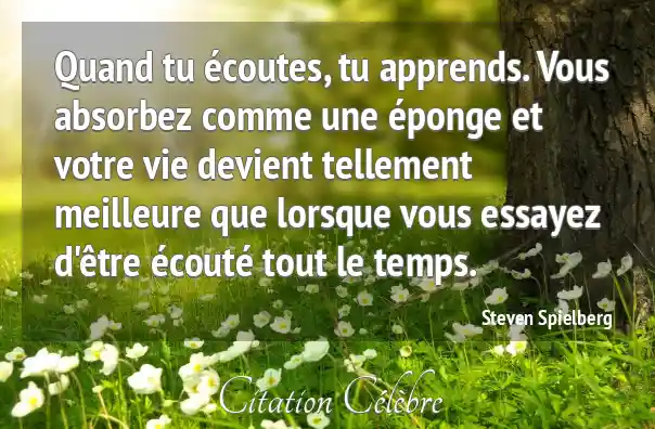 Quand tu écoutes, tu apprends. Vous absorbez comme une éponge et votre vie devient tellement meilleure que lorsque vous essayez d'être écouté tout le temps.