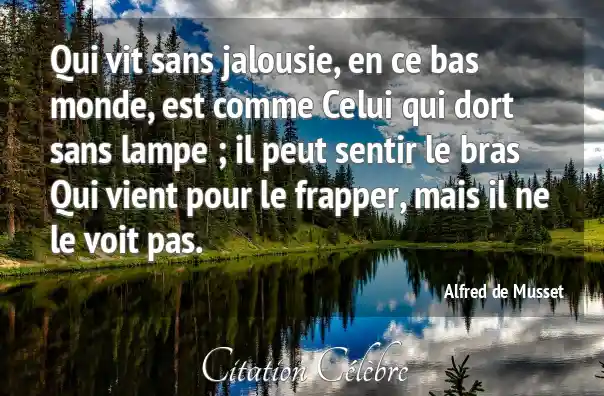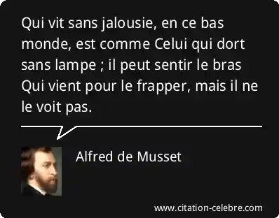 Qui vit sans jalousie, en ce bas monde, est comme Celui qui dort sans lampe ; il peut sentir le bras Qui vient pour le frapper, mais il ne le voit pas.