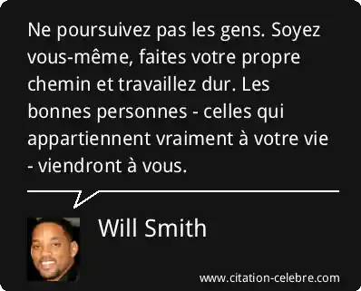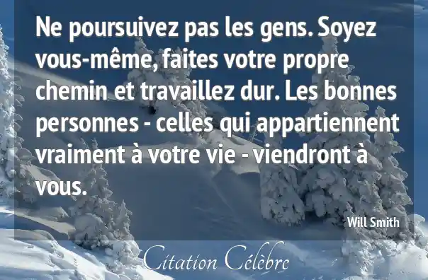 Ne poursuivez pas les gens. Soyez vous-même, faites votre propre chemin et travaillez dur. Les bonnes personnes - celles qui appartiennent vraiment à votre vie - viendront à vous.