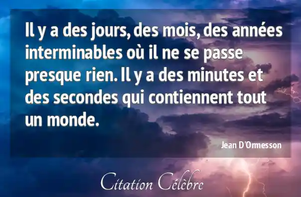 Il y a des jours, des mois, des années interminables où il ne se passe presque rien. Il y a des minutes et des secondes qui contiennent tout un monde.