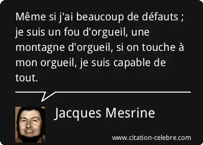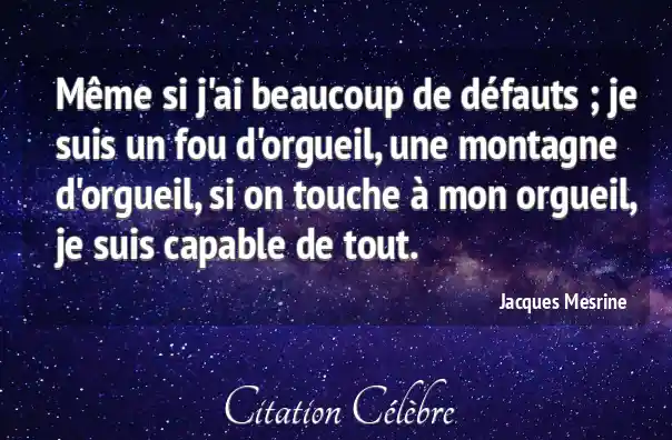 Même si j'ai beaucoup de défauts ; je suis un fou d'orgueil, une montagne d'orgueil, si on touche à mon orgueil, je suis capable de tout.