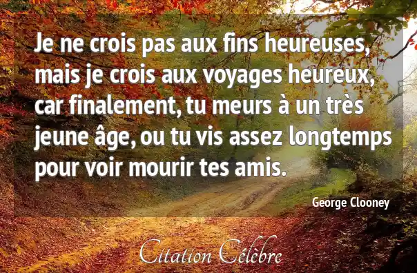 Je ne crois pas aux fins heureuses, mais je crois aux voyages heureux, car finalement, tu meurs à un très jeune âge, ou tu vis assez longtemps pour voir mourir tes amis.