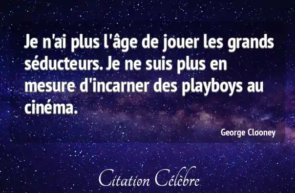 Je n'ai plus l'âge de jouer les grands séducteurs. Je ne suis plus en mesure d'incarner des playboys au cinéma.
