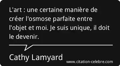 L'art : une certaine manière de créer l'osmose parfaite entre l'objet et moi. Je suis unique, il doit le devenir.