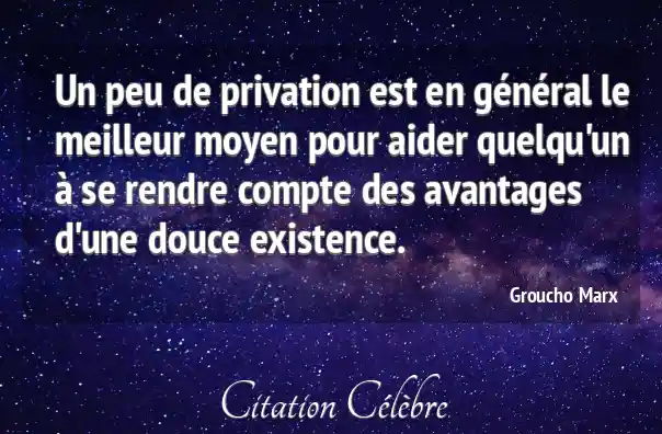 Un peu de privation est en général le meilleur moyen pour aider quelqu'un à se rendre compte des avantages d'une douce existence.