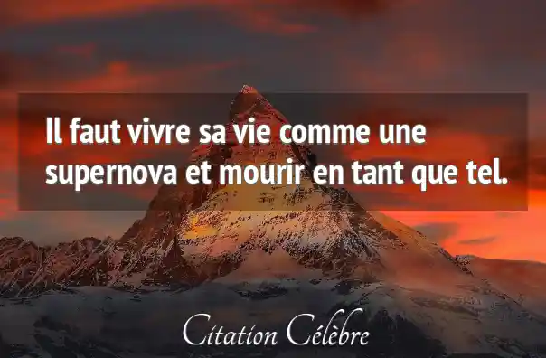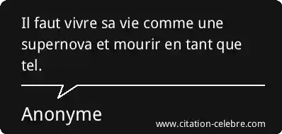 Il faut vivre sa vie comme une supernova et mourir en tant que tel.