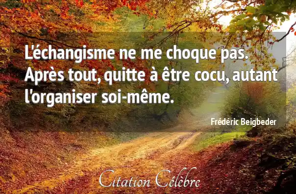 L'échangisme ne me choque pas. Après tout, quitte à être cocu, autant l'organiser soi-même.