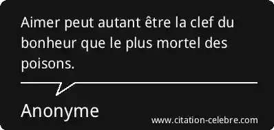 Aimer peut autant être la clef du bonheur que le plus mortel des poisons.