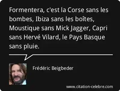 Formentera, c'est la Corse sans les bombes, Ibiza sans les boîtes, Moustique sans Mick Jagger, Capri sans Hervé Vilard, le Pays Basque sans pluie.