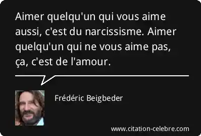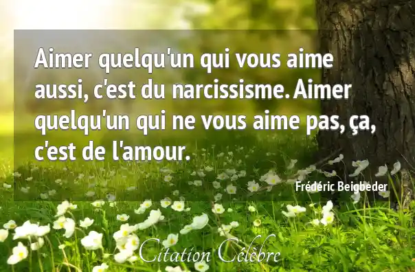 Aimer quelqu'un qui vous aime aussi, c'est du narcissisme. Aimer quelqu'un qui ne vous aime pas, ça, c'est de l'amour.