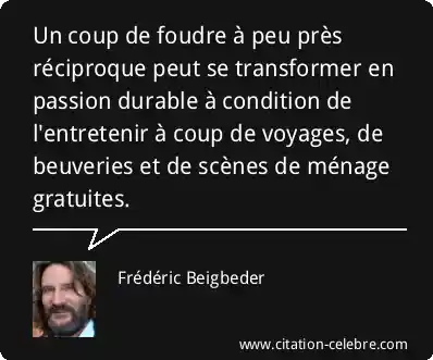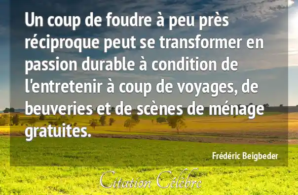 Un coup de foudre à peu près réciproque peut se transformer en passion durable à condition de l'entretenir à coup de voyages, de beuveries et de scènes de ménage gratuites.