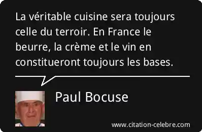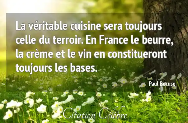 La véritable cuisine sera toujours celle du terroir. En France le beurre, la crème et le vin en constitueront toujours les bases.