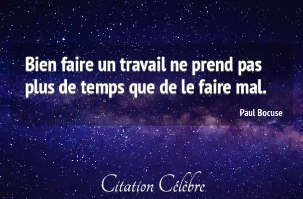 Bien faire un travail ne prend pas plus de temps que de le faire mal.
