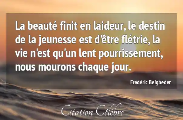 La beauté finit en laideur, le destin de la jeunesse est d'être flétrie, la vie n'est qu'un lent pourrissement, nous mourons chaque jour.