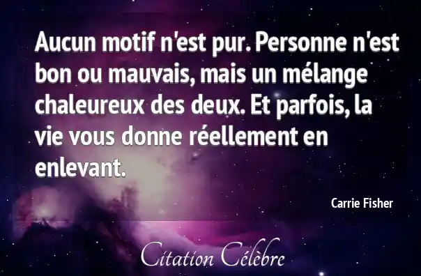 Aucun motif n'est pur. Personne n'est bon ou mauvais, mais un mélange chaleureux des deux. Et parfois, la vie vous donne réellement en enlevant.
