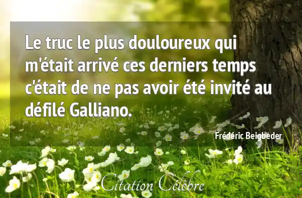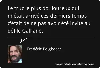 Le truc le plus douloureux qui m'était arrivé ces derniers temps c'était de ne pas avoir été invité au défilé Galliano.