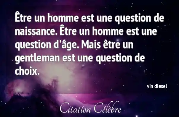 Être un homme est une question de naissance. Être un homme est une question d'âge. Mais être un gentleman est une question de choix.